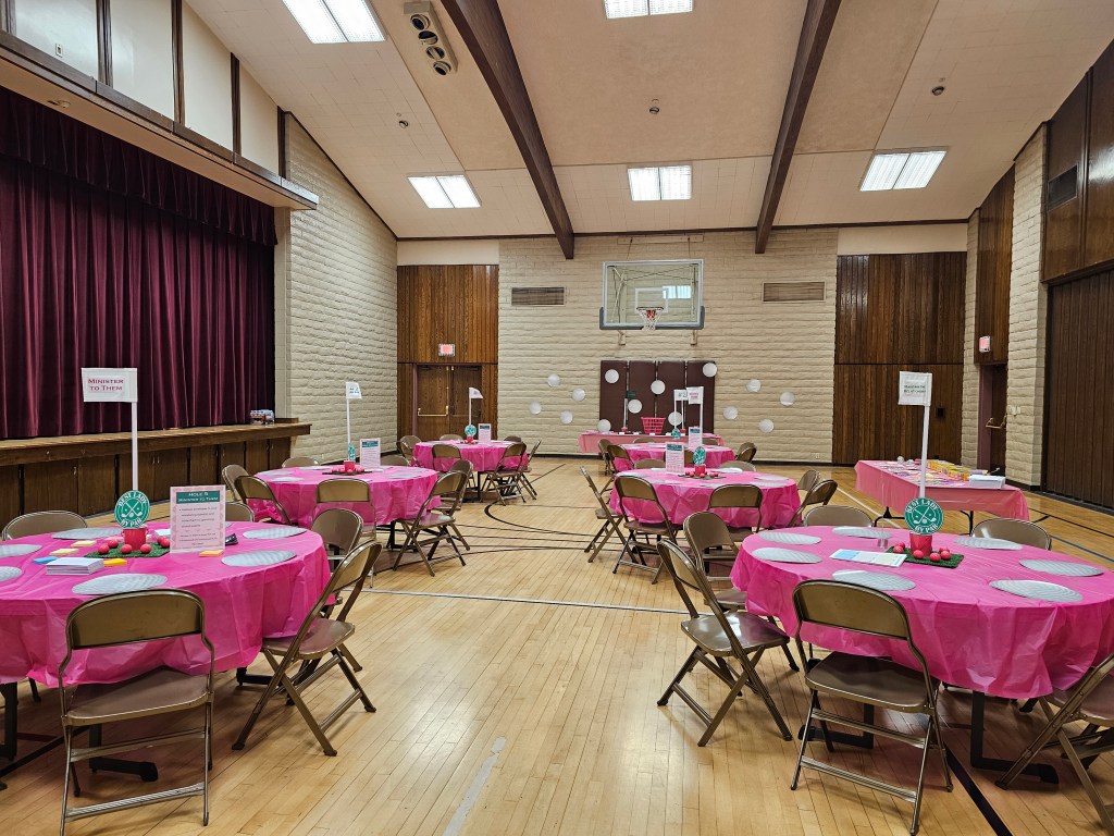 Rather than creating one long list of ALL the materials we used for this event, I’m going to break it down by each “hole” (table with a different activity on it) that participants visited. After Hole 1 and finding out who they minister to, participants could visit any other hole in any order they wanted. Though each hole had a different activity, we used the same decorations throughout the event space.